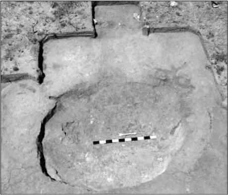 Structure 4, the small circular pithouse at Indian Springs site. The scale is 1-m long with 10-cm increments.