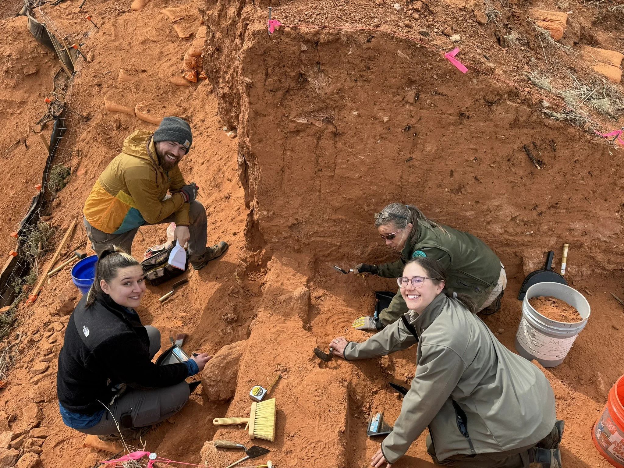 Overtime and after several visits by professional archaeologists, the significance and imperilment of the site was fully recognized. Nearly 70% of the site has been lost to erosion which continues to eat away at the bone exposures. A group of archaeologists resolved to act quickly to better assess and salvage the site through excavation. In 2023 Texas Tech University conducted test excavations at Nighthawk as part of a field school led by Dr. Brett Houk and Dr. Tamra Walter. These investigations showed that a large number of bison were present in several distinct areas. Stone tools were found scattered around on the surface including several projectile points. Radiocarbon dates of the bison bones showed that at least two components were represented. One component represented the Late Archaic period and another the Late Prehistoric period. This revealed that the hunting facility was reused over time. It also demonstrates that Late Prehistoric people in the region jumped bison, something that had never been documented before in the region.
